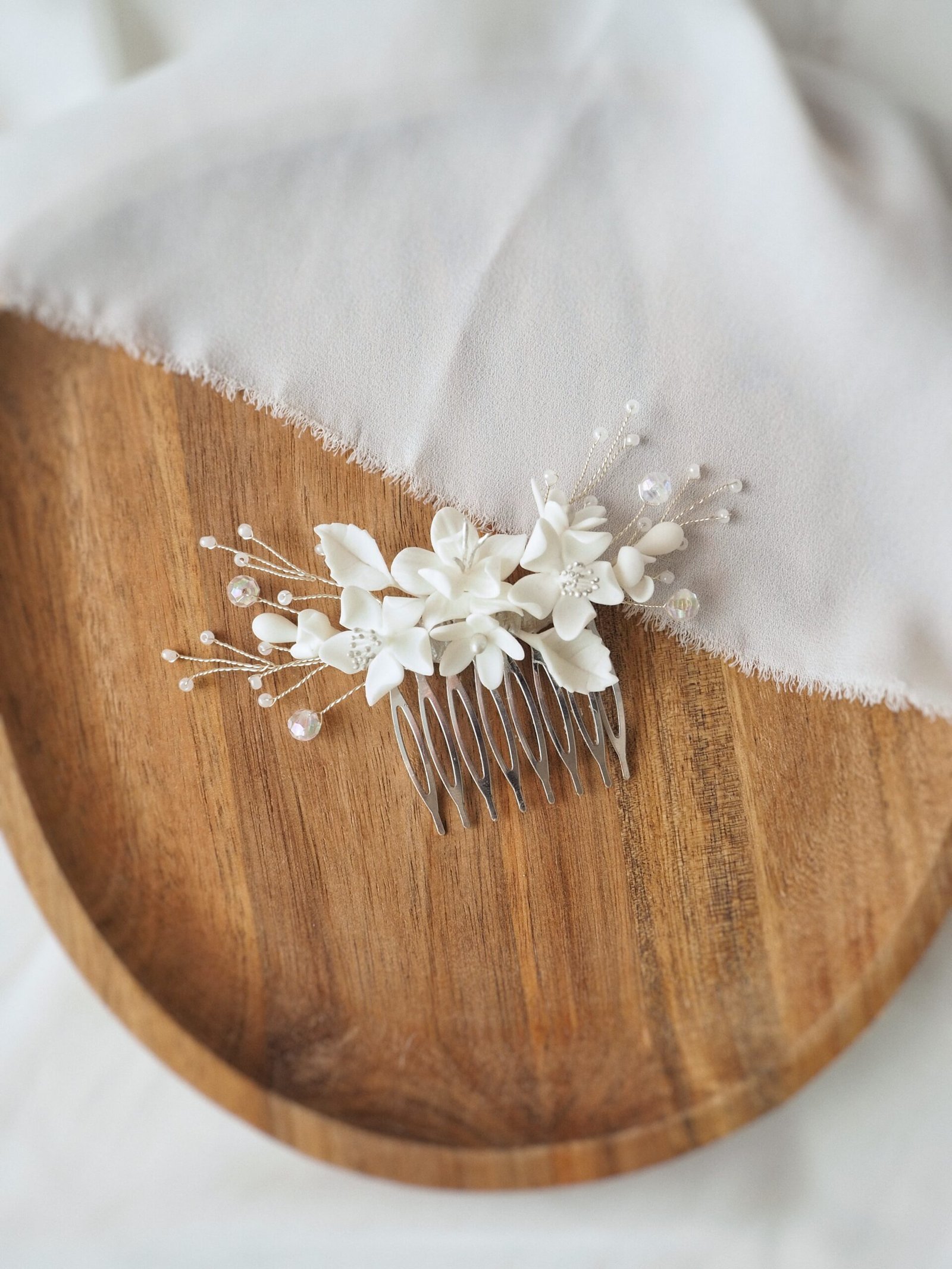 Creamos peinas de boda únicas mediante técnicas y procedimientos totalmente artesanales. Diseñamos peinas de novia personalizadas y a medida adaptadas a ti para que marques la diferencia en ese día tan especial e irrepetible.